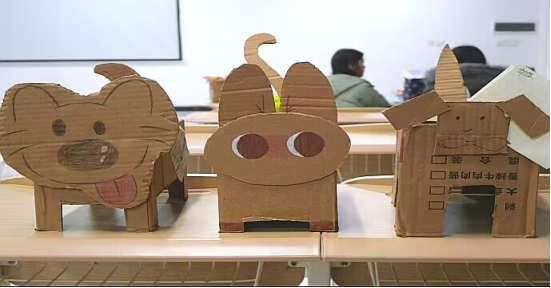 同学们利用废弃纸箱、包装盒,创作出小动物、纸艺花等摆件,每件作品都充满巧思。活动不仅锻炼了动手协作能力,更让“变废为宝”的循环理念深植人心,鼓励大家在生活中继续发现和创造。这既是一次生动的创意实践,也是一堂绿色教育课,引导大家树立“物尽其用、向绿而行”的可持续生活观。